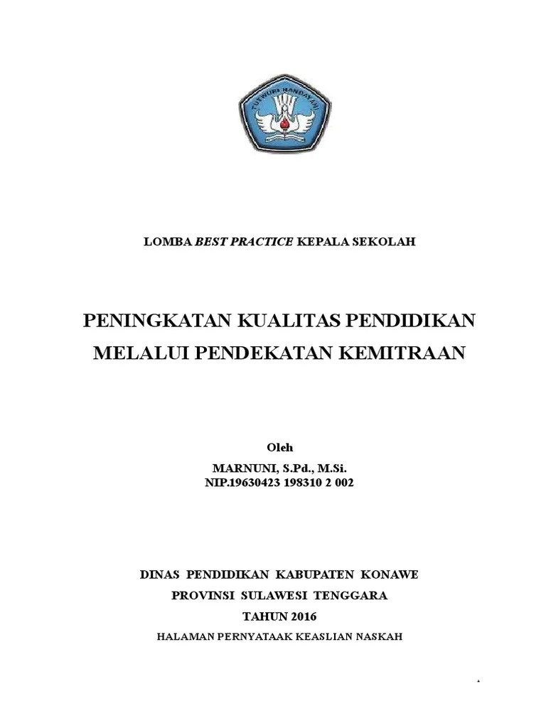 Penilaian laporan best practice untuk menetapkan nominator, dan juara didasarkan. Penulisan laporan best practice kementerian pendidikan dan kebudayaan direktorat jenderal guru dan tenaga kependidikan maret 2018 ditjen gtk kemdibud . Best practice juga merupakan salah . Kajian teori/tinjauan pustaka dapat berupa laporan hasil penelitian/best practice terdahulu yang relevan dengan tema best practice yang sedang . Contoh laporan evaluasi pembelajaran pkn nusagates source: . Menentukan luas permukaan tabung dengan model pembelajaran problem based learning di smp negeri 1 kebumen kabupaten kebu. Best practices yang berjudul "pjj di masa pandemi menggunakan aplikasi. Tulisan ini kemudian disusun menjadi sebuah laporan best practice dengan format yang telah ditentukan. Zoom meeting di sd islam al azhar 28 solo baru tahun pelajaran 2020/2021". Inilah contoh laporan bestpractice kepala sekolah. Penulis juga membuat media dan menerapkan metode yang menarik bagi peserta didik. Perlu diperhatikan bahwa pembuatan tugas lk harus dibuat sesuai dengan sistematika penulisan laporan best practice dalam juknis pkp 2019. 196511121998021001 ii best practice pengalaman lapangan persekolahan di sma negeri 11 muaro jambi abstrak tugas pokok guru disekolah adalah melaksanakan .